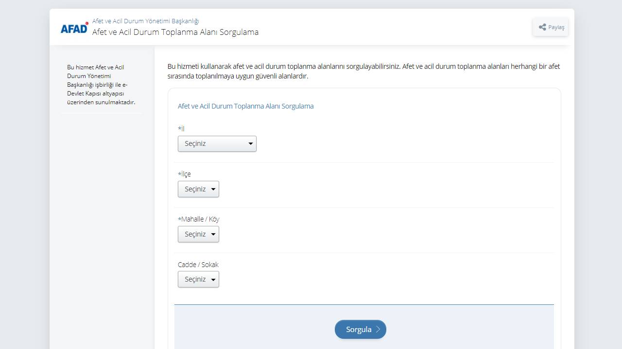 Белешка: По земјотресот, активностите по потрагата и спасувањето ги организира АфАД. Во секој случај потребно е да контактирате АфАД за насоки и помош.