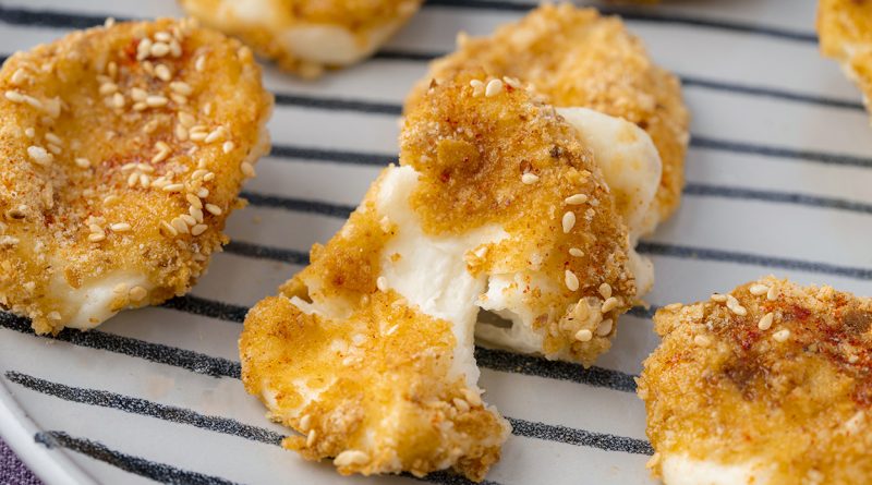 Потоа, подготвените парчиња се ставени во воздухот за пржење и се печат на околу 150°C: 8 до 10 минути. За алтернативно, истиот резултат може да се постигне и во вентилатор фурна при истата температура и време.