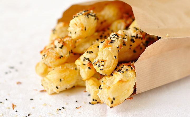 Во секој квадрат кора, ставете по една лажичка сусам или пармезан, а во секој трети слој додајте и сончогледови семки. Со истата постапка повторете како да создадете три слоја од кора за плехмесите, па сечете долги и тенки парчиња за поголема презентација.