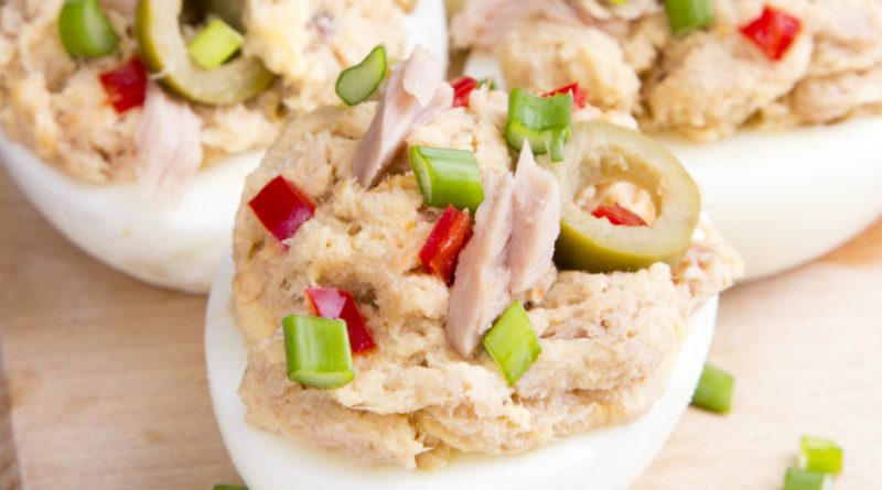 Потребни се состојки за богато пополнети јајца со туна: 5 големи јајца, еден мал кон: йер туна, една лажичка дижон сенф, една лажичка мајонез, половина чашка кимни конци, 4–5 цветови на капари и 1–2 корнишон краставички. Состојките ги собираат вкусот и создаваат кремаста полнење за јајцата.