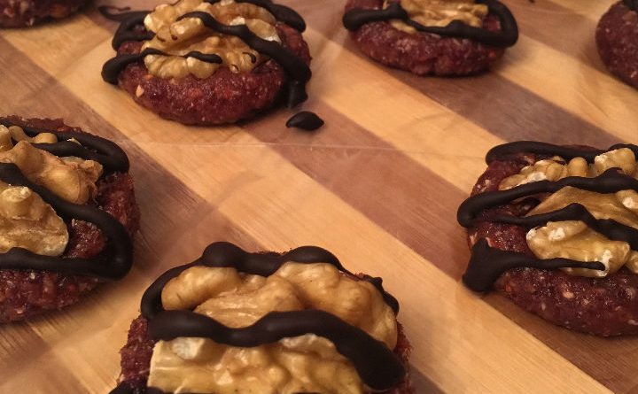 Свакој парче обликувајте го во округол облик и горе поставете половина орев за допир на декорацијата. Ова додава нијанса на крцкавост и крајна презентација.