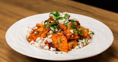 Потоа се посипуваат зачините—магдонос, пиперка во прашок, риган, црвена пиперка во прашок, прашок од бакарница и сол по вкус. Следи преливот: се прелива со маслиново масло и се меша за да се распредели рамномерно.